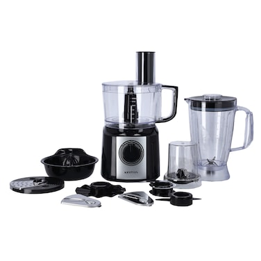 - <p>Our multifunctional food processor has a wide range of functions to simplify your cooking and allow you to make your citrus juices, bread dough, pizza, cakes, grated vegetables, minced meat and more!You can prepare all your meals with Krypton food processor and save time to enjoy your family. Buy one Krypton food processor means you get blender, chopper, juicer, knead dough machine, mixer, grinder, slicer and etc. Meet your most demands of cooking preparation, save time and money. Make cooking a kind of pleasure. 2 Speed and pulse function meet your various needs of recipe prep, blending, cutting, shredding, mincing, dry grinding, knead dough, convenient and efficient. With 4 suction cups and the weight of the base itself, the machine is more stable during operation, ensuring safety and better processing results. 2 safety locks keep you and your child safe. Therefore, both safety locks need to be fully locked before the machine can work. Blades and cutting heads can be simply placed in the sealed bowl, no more other space be need.<p>HEALTHY & 3 Large Food Processor Bowls Combo - Our blender food processor grinder includes one 2L jar, one 2L air volume bowl, one grinding jar, giving you different way to make your favourite foods, all the parts are BPA-Free Tritan material, safe and ensure your healthy life.<p>2-SPEED SETTING WITH PULSE - Two modes blending for different texture of food, maintaining the most original flavor. "1" gear for soft food such as raspberries, tomatoes, oranges; "2" gear for hard food such as apples, kale, carrots, and celery, and more. Just turn the knob switch to get any speed for 0-2 or press the pulse button, the speed will reach its peak in an instant. Make the food preparation process easier and give you a unique culinary experience.<p>POWERFUL - The powerful 800W motor, superfine filter and lower than 60DB design provide you with an efficient and quiet food processor experience. You can blend most of fruits and vegetables in few seconds, no need to wait and keep food nutrition and healthy. Note: blades are stored in additional drawers, easy to find when you need.<p>ELECTRONIC OVERLOAD PROTECTION, DUAL LOCK PROTECTION - This slicer shredder food processor has an electronic overload protection feature to protect the motor from overheating and equipped w/ silicone rubber bottom that suctions to countertops for a strong hold while in use. To protect your max safety when it’s working, the food processor has the dual lock protection, it will work only when the bowl lock onto the base and the top lock onto the bowl together. If you want to add food during working, add from the large feed chute.<p>MEET EVERY NEEDS FOR YOUR RECIPES - The controllable 3 speeds allow you to prepare your various types of food, like pie dough, chop, slice and shred vegetables, mix hummus. Once the food processor is on you can adjust the speed switch to meet the different requirements for each food.