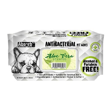 Absolute Pet Absorb Plus Antibacterial Pet Wipes Aloe Vera 80 Sheets
