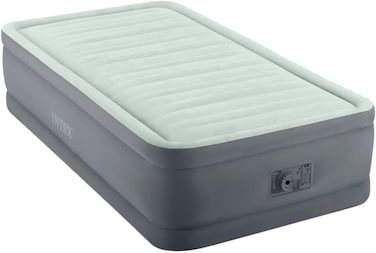 The Intex PremAire Twin Airbed is a revolutionary mattress offering the perfect combination of luxurious comfort and best-in-class durability. This bed provides the ideal levels of firmness and support for a fantastic night of sleep. Luxurious flocked pillow-top with heavy duty 2-ply laminated side walls and bottom. The side walls and bottom firmly retain air while providing a high quality puncture-resistant surface. The bed features a powerful built-in electric pump for fast inflation and a carrying bag for convenient storage
