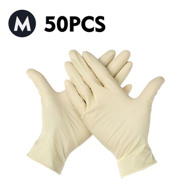 Generic-(M)50 Pcs/Disposable Gloves Powder-Free Rubber Latex Stretchy Gloves Sterile Food Safe Grade for Home Food Laboratory Use