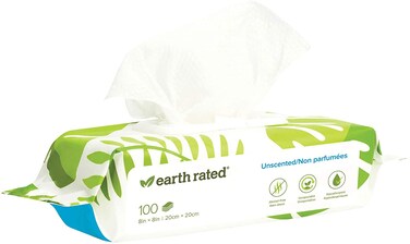 Scent:UnscentedThe Best Bath is No Bath! Earth Rated conditioning dog grooming wipes leave your dog’s coat soft while removing dirt and odors between baths and are perfect for dealing with whatever messes your best friend gets into. Our plant-based pet wipes for dogs and cats are also USDA-certified 99 percent biobased! These 3-in-1 deodorizing dog and kitty wipes are perfect for grooming dogs’ paws, body and bum. Our dog cleaning wipes are made with shea butter, soothing aloe vera and are completely free of any parabens, sulfates and alcohol. The formula is hypoallergenic, non-drying and gentle enough for daily use. The wipes are also mild enough to use on your puppy. Our Earth Rated dog grooming and cat cleaning wipes are ultra-thick with a quilted design to stand up to the toughest dog nails so you can remove all of the dirt, mud (or worse, because we've all been there!) from your dog's paws. This pack of unscented dog and cat wipes contains 100 wipes that measure 8x8 inches.