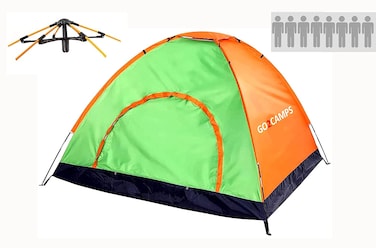 - [AUTOMATIC INSTANT TENT】Absolutely NO complicated setup needed, GO2CAMPS instant camping tent can be ready with in few seconds, using the automatic hydraulic technology. Save more precious time so that you can deal with more important things and have more fun with your family [ROOMY TENT FOR FAMILY】With unfolding size240240140cm, the tent is spacious for 7-8 adults, or 6 adults with 2 kids, or simply 6 people and their gear,GO2CAMPS pop up tent is great for couples and families. [ALL ROUND PROTECTION】Made from 190T silver coated waterproof anti UV polyester and 210D oxford fabric floor with fully taped seams, GO2CAMPS backpacking tent keeps the inside dry & cool and free from harsh weather, provides stronger resistance to water, sun and wind. [BREATHABLE & STURDY】Equipped with large doors with zippers, this tent provides excellent ventilation, which is fantastic in hot days. Constructed with strong fiberglass rods, using with the provided pegs together, GO2CAMPS automatic tents are more secure and stable. [VERSATILE】With premium material and user-friendly design, the tent is suitable for outdoor hiking, camping, climbing, picnic, traveling, fishing, beach. Comes in a small and ultra-light package with a bonus carry bag, it is very easy to carry around.