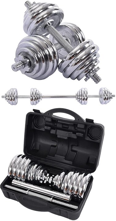 Max Strength 2 In 1 Dumbbell And Barbell Weights Set With Carry Case From Premium Chrome Weight Lifting Set With Connector Bar - Converts In Seconds! With Durable Grips