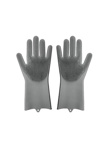 Generic Magic Silicone Gloves With Wash Scrubber Grey 35.7 x 16.5cm