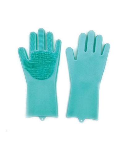 Generic 1 Pair Cleaning Sponge Gloves, Silicone Reusable Brush Heat Resistant Scrubber For Housework, Dishwashing, Kitchen Clean, Bathroom - Blue