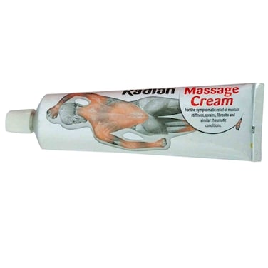 - Radian massage cream is indicated for the symptomatic relief of muscular stiffness sprain fibrositis and similar rheumatic conditions