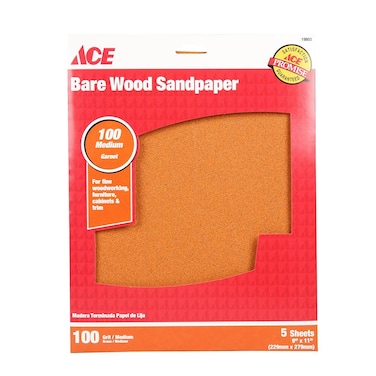 ACE Bare Wood Sandpaper (100 Grit/Medium, 229 x 279 mm, Pack of 5)