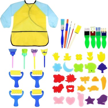 Doreen Kids Early Learning Sponge Painting Brushes Kit, 42 Pieces Sponge Drawing Shapes Paint Craft Brushes for Toddlers Assorted Pattern, Including Children Waterproof Art Painting