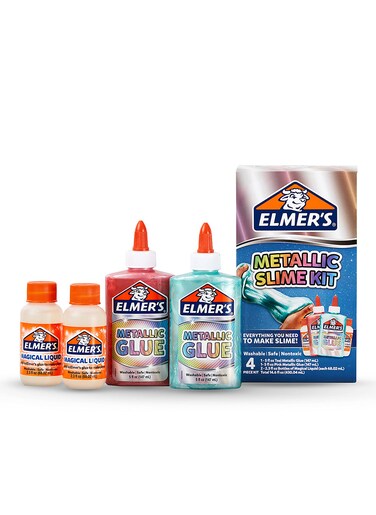 Slime kit contains all you need for Metallic Slime.Liquid color glue with a Metallic shimmer.Washable, safe, nontoxic glue formulated for use by children.Magical liquid is an all-in-one formula that eliminates the need for lens solution, baking soda, and additives