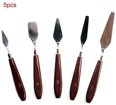 - 5pcs Wooden Painting Handle Paint Pallette Knives Spatula Stainless Steel Blade New