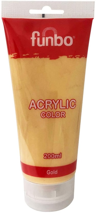 - <p>Fast Drying water based Paint.<p>Ready to use. can be diluted with water or acrylic medium.<p>Good coverage<p>Can be used on various surface.<p>Color:144 GoldFunbo New generation of acrylic colors.They have a finish that remains bright & intense after drying. Available in 30 shades of 200ML plastic tubes.