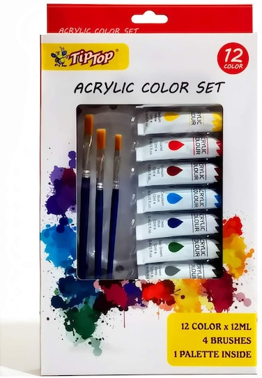 lavish Tiptop 12 Color Acrylic Paints with Brushes & Palette Paint Set