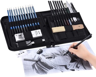 Professional Sketching Drawing Pencils Kit Including Sketch Graphite Charcoal Pencils Willow Sticks Erasers Sharpeners with Pop-Up Stand Carry Bag for Art Supplies Students 40 pcs, set