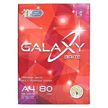 The paper is also smooth and lightweight, making it easy to handle and feed into printers and copiers. Whether you need paper for your office, school, or personal use, the Galaxy Brite A4 Multi-Purpose Paper White is a reliable and versatile choice.