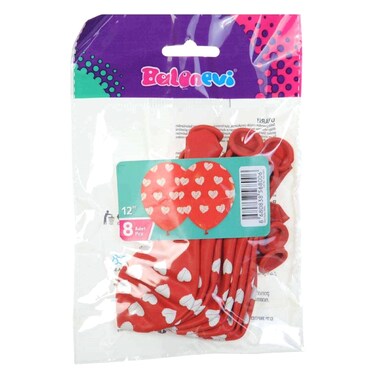 Add a touch of love to your next celebration with these Balonevi Hearts Printed Balloons in Red. Each pack contains 8 12-inch balloons, perfect for decorating a party or event with a romantic theme.