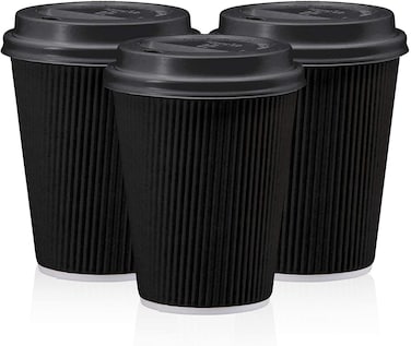 - <p>PACKAGE INCLUDES- 50 pack of black disposable coffee cups with lid. Each cup can hold up to 8 fluid ounces<p>MULTI-PURPOSE CUPS- All purpose hot paper coffee cups that are perfect for both hot or cold drinks. Perfect for festive occasions such as bridal showers, baby showers, birthday parties, weddings, and even everyday use, great for restaurants, cafes, and shops<p>PREMIUM QUALITY- Our paper cups with lid are made of high food grade paper to be extra thick and sturdy to ensure they are durable and lasts through multiple refills<p>LEAKPROOF- The compatible lids snap on easily and are leakproof, great for on-the-go or while running errands<p>ECO-FRIENDLY- Our disposable paper cups are recyclable, reusable and environmentally responsible<p>Product Dimensions: <p>Product Description:<p>Size:8 oz.MARKQ black disposable coffee cups with lids are an ideal solution. Unlike a smooth surface cup, this cup is designed with a ripple effect that works as an insulator which does not let the heat pass through the walls on the outside of the cup, and makes it easier for the consumers to hold it without having to need for a cup sleeve. These cups are made with rolled rims for extra strength and sturdiness - ensuring a tight lid fit while also stopping the cups from flexing in the hand. This will reduce the risk of any leaks, spills or burns when customers are enjoying their coffee, soups or any hot or cold beverage. The perfect and safe solution for cafes, coffee shops, kiosks, bistros, festive events, drinks to-go and even everyday use. With a stylish ripple design these not only perform well but look stylish and modern also. Key Features: Thick triple wall insulated cups Compostable and Recyclable material Stylish black design Includes secure lids to keep your drink from spilling when you walk around or drive around in the car Triple insulated so no need for a cup sleeve Extra layer of rippled insulation keeps drinks warm, provides superior grip, and prevents hands from burning <p>Specification: Brand name: MARKQ Cup size: 8-ounce <p>Package Included: 50 Pack of black ripple cups with lids Material: Paper Design: Ripple Colour: Black Made in: UAE <p>Disclaimer: Despite every effort to provide accurate images of each product's color and size, actual color and size may vary slightly due to different device screen settings, the lighting in the installation location, slight differences in product finishes over time, and other factors.