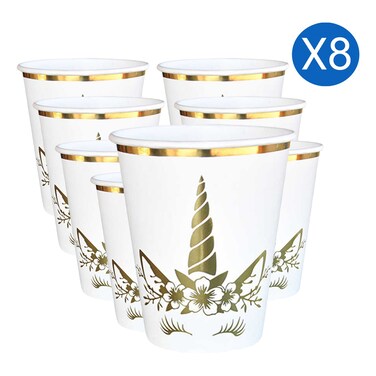 Unicorn Gold Foil Printed Paper Cups 236ml 8 PCS