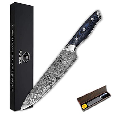 [8-Inch]Chef Knife FANTECK Professional Damascus Chef Knife High Carbon Ultra Sharp VG-10 Damascus Stainless Steel 67 Layers Kitchen Meat Cutting Gyuto Chef Knife [Gift Box]- Ergonomic Blue G10 Handle
