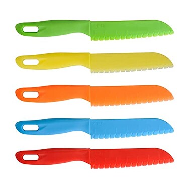 Are You Looking for a Knife that Does Not Hurt Your Hands Easily?Are You Looking for a Cake Knife that Won't Scratch Your NonstickPan Coating?If Your Answer Is Yes, Please Try Our Plastic Knife Set, Which Is ExactlyWhat You Looking for. I Believe It Can Meet Your Expectations.Features and Benefits:1. Great corrosion resistance and heat resistance plastic kitchen knife set.2. Colorful plastic knives set not hurt fingers, safer then metal knife.3. Plastic kitchen knife is non slip handle with hanging hole, easy storage.4. Kid plastic knife integrated design does not hide dirt and easy to clean.Specification:Material: Food grade PP materialColors: blue, orange, yellow, red, greenPackage Included: 5 x plastic kitchen knifeNote:1. Our plastic knife is safe, but child still need be accompanied by a parent.2. Kids plastic safe knives real color may slightly different from picturesdue to computer screen's resolution, brightness, contrast etc.3. Please allow kid-friendly knife set a little error on the size due tomanual measurement.