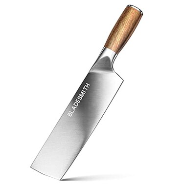 ?Specifications Overall Length: 12.5" Blade Length: 7.8" Blade Thickness: 2.5 mm Blade Width: 2" Handle Length: 4.7" Knife Weight: 227g 0.5lb Weight with Package: 338g 0.7lb?Features 1.The blade is corrosion resistance, rust resistance, wear resistance, scratch resistance. 2.Ultra sharp blade and hold edge well. 2.Multifunctional nakiri knife, suitable for meat, vegetable and fruits. 3.Ergonomic Pearwood Handle, durable and comfortable to use. ?Small Tips for Using This Knife : 1. Due to this knife has higher carbon content, please pay attention to clean the knife, and acidic or alkaline substances cannot stay on the blade for a long period, it is not suitable for dishwasher. Such knife shall be washed by hand, then keep it air dry or wipe it by cloth. 2. Please store it in a safe place where your kids cannot get it. 3. Please do not touch the knife edge by hand directly. 4.Please attention this nakiri knife is not fit for bones or frozen foods.
