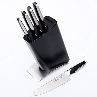 GrandTies Feinste High Carbon German Stainless Steel 7pc Kitchen Knife Block Set - Chef Knife, Santoku, Bread Knife, Carving Knife, Utility Knife, Paring Knife, Kitchen Knife Sharpener Cutlery Sets