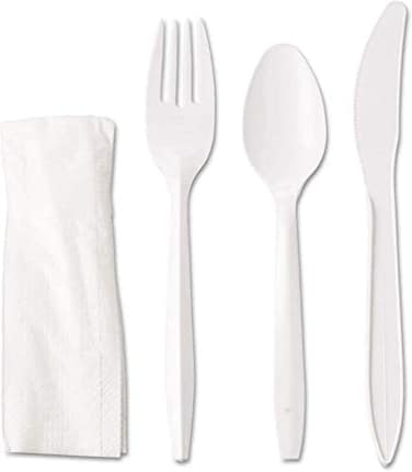 Markq [50 Pack] White Plastic Cutlery Set with Napkin - Heavy Duty Knife Fork Spoon Napkin Set -Disposable Cutlery Set