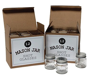 You'll love our 2 ounce mini mason jar shot glasses. Our glasses are made of thick, sturdy glass so they're very difficult to break and will last for years. Each glass has the word "Shots" embossed on the side. Every jar comes with a silver lid and BPA-free leak-proof liner. The lids are flat, which makes them ideal for labeling for favors or gifts. The jars are 2 inches in diameter and 2 3/8 inches tall. You'll find plenty of uses for these wonderful jars, from drinkware and favors to crafts and gifts. We sell them in sets of 12, 24 and 48 at great prices. And if you are not absolutely satisfied, we have a no questions asked money-back return policy.