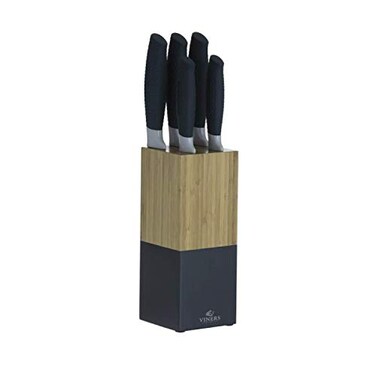 Viners Horizon Block Set, 5 Kitchen Knives & Bamboo Knife Holder with a Quality Lifetime Indigo, 6 Piece, Varied, Stainless Steel