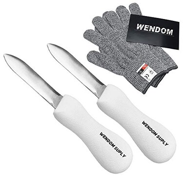 WENDOM Oyster Shucking Knife and Gloves Set Included 2pcs Oyster Shucker Opener New Haven Style, Cut Resistant Glove Professional Guard and Block Tools