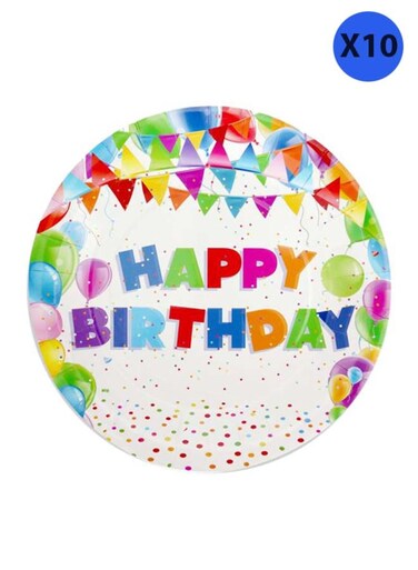 12-Piece 7inch Happy Birthday Print Paper Plates