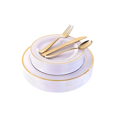 Aiwanto 125Pcs Disposable Plate Set Dinner Set Plate Spoon Set for Birthday Anniversary Party Plate Dinner Set Lunch Plate Set Christmas Party Accessories