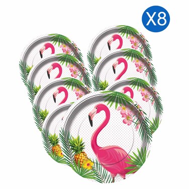 Made from durable and sturdy material, these plates are ideal for both indoor and outdoor use. Whether you're hosting a summer BBQ, pool party, or birthday celebration, these flamingo plates are a stylish and convenient option for serving your favorite dishes. With 8 plates included in each pack, you'll have plenty to go around for all your guests.