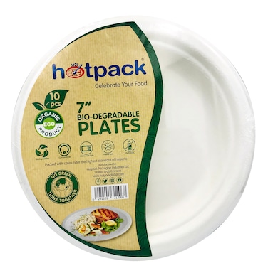 HOTPACK - 10 PIECES BIO DEGRADABLE PAPER PULP PLATE 7 INCH