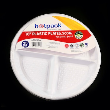 Hotpack - Plastic Round Plate - 10 Inch, 3 Div - 25Pcs