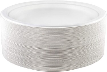 STURDY & DURABLE PLATES - Designed to withstand both hot and cold temperatures, these heavy duty disposable plates are perfect for any dish, from desserts to steaks! Plus, they're also microwave and freezer safe.