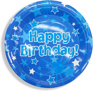 Party Time 6-Pieces Happy Birthday Paper Plates, Blue Stars Design 9inch Disposable Paper Plates For Party Dinnerware, Tableware Set for Wedding, Baby Shower and Birthday Party Supplies