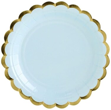 Pastel Blue Party Paper Plates, 7 inches Disposable Plates with Gold Foil Scalloped Edging for Weddings, Picnics, Baby Showers, Anniversary Decorations & Birthday Party Supplies [6 Pack]