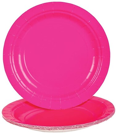 This posting includes: Lot of 25 7" hot pink paper plates as featured