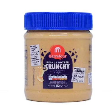 - Carrefour Peanut Butter Crunchy 340g is high in protein that supports and fuels your active lifestyle.