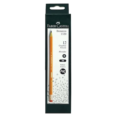 Faber-Castell Bonanza 1320 HB Eraser Tip Graphite Pencils Yellow 12 PCS
