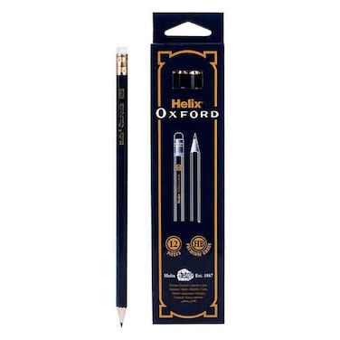 Helix Oxford HB Pencil with Eraser Black 12 PCS