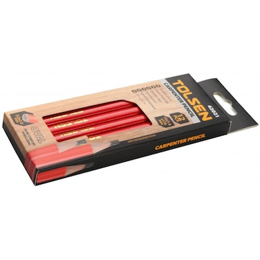 <li><b>Tolsen Carpenters Pencil Lead consists of 12 lovely, handy pens. It has bold and large brush strokes, solid lead, natural wood body.<li>Pen is prominent red, easy to find in the process of work.<li>Beautiful design.<li>Used for marking and notes.<li>Easy to use.<li>Pencil lead size is 5.0 x 2.0mm.<li>SPECIFICATIONS<li>Item Name Carpenter Pencil<li>Model 42021<li>Brand Tolsen<li>Colour Red<li>Size 12 x 7.4 x 176mm<li>Brand Origin (not manufacture) China<li>Packing Quantity 1<li>Unit Set<li>Pieces per unit 12