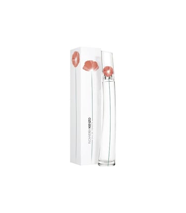 The new FLOWER BY KENZO Eau de Toilette, a bright fragrance with an enveloping trail. With a slight shiver, Sicilian Lemons introduce a Bulgarian Rosewater that melts into a whisper of White Musk with hints of Vanilla. Housed in a bouquet of glass bottles reaching for the sky, FLOWER BY KENZO Eau de Toilette reveals a poppy in pastel shades touched by light. This floral musk fragrance is a sensual, singular creation infused by nature.