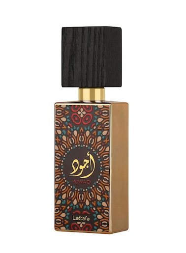 Top notes: Bergamot, Litchi, Fruity notes. Heart notes: Jasmine, Roses, Cinnamon. Base notes: Cedar, Sandalwood, Amber, Musk, Vanilla. Design house: Lattafa. Scent name: Ajwad. Gender: Unisex. Category: Perfume. SubType: EDP Spray. Size: 2.03 oz. Barcode: 6291108732489. Lattafa Unisex Ajwad EDP Spray 2.03 oz Fragrances 6291108732489.