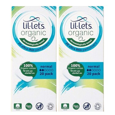 Lil-Lets Organic Ultra Thin Pantyliners Normal White 20 Liners Pack of 2