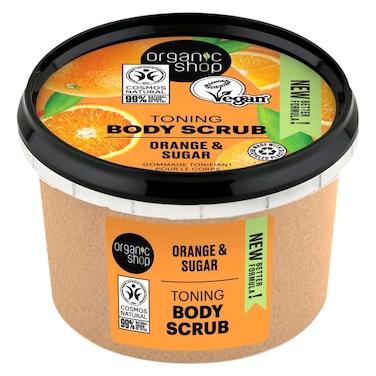 - This toning body scrub filled with organic orange oil and natural sugar instantly restores the softness and flexibility of your skin