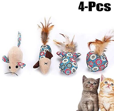 Generic Cat Toys - New Mouse Fish Ball Feather Toys For Cat Funny Cat Teaser Scratcher Interactive Toy Kitten Play Toys Pet Products 4Pcs/Set (Brown)