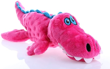 Godog Gators With Chew Guard Technology Durable Plush Squeaker Dog Toy, Pink, Large