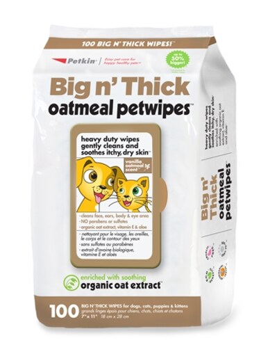 Petkin Big N' Thick Oatmeal Petwipes 100Ct