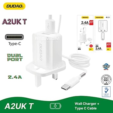 DUDAO 2.4A Dual Port Type-C Usb Wall Charger, 1M, WHITE (A2UK)…